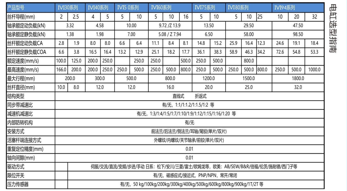 本系列電動缸集成了交流伺服電機(jī)、伺服驅(qū)動器、高精度滾珠絲桿、模塊化設(shè)計等技術(shù),整個電動缸具有結(jié)構(gòu)緊湊、慣量小、響應(yīng)快、 低噪音和長壽命等特點(diǎn)。伺服電機(jī)與電動缸的傳動絲桿直接相連接,使伺服電機(jī)的編碼器直接反饋電缸移動活塞的位移量,減少了中間環(huán)節(jié)的慣量和間隙,提高了控制性和控制精度。伺服電機(jī)與電動缸整體相連,安裝容易、設(shè)定簡單、使用方便。電動缸的主要零部件均采用國外名牌產(chǎn)品,性能穩(wěn)定、故障率低、可靠性高。