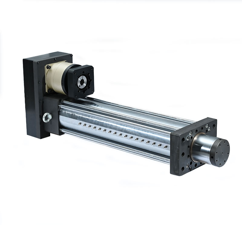 折返式電動缸由于整體長度短,適用于安裝位置比較小的場合。同時本方案選用的同步帶,具有強(qiáng)度高、間隙小、壽命長的特點(diǎn),使整個電動缸具有較高的控制性和控制精度。伺服電機(jī)與電動缸配合靈活,安裝容易、設(shè)定簡單、使用方便。