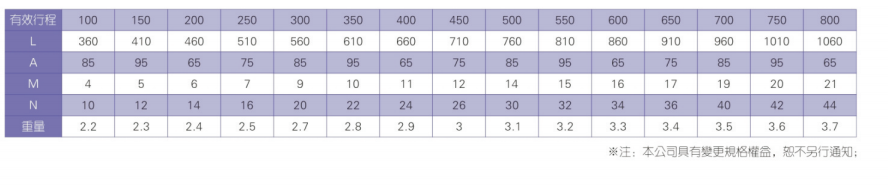2、螺桿轉(zhuǎn)速超過臨界轉(zhuǎn)速時可能發(fā)生共振,臨界轉(zhuǎn)速和螺桿長度有關(guān),故滾珠螺桿的臨界轉(zhuǎn)速也間接決定了滑臺模組的有效行程和總長度,有效行程和常用螺桿規(guī)格轉(zhuǎn)速的關(guān)系如下列表格。