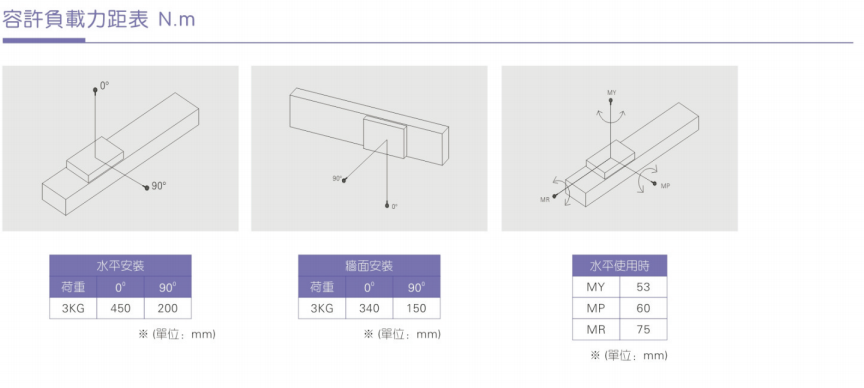 3、加減速度會使搬運(yùn)質(zhì)量產(chǎn)生慣性負(fù)荷,加減速度越大可搬運(yùn)質(zhì)量會越??;而且過大的加減速度會產(chǎn)生較大的重勢力,設(shè)計時需納入考量規(guī)范。