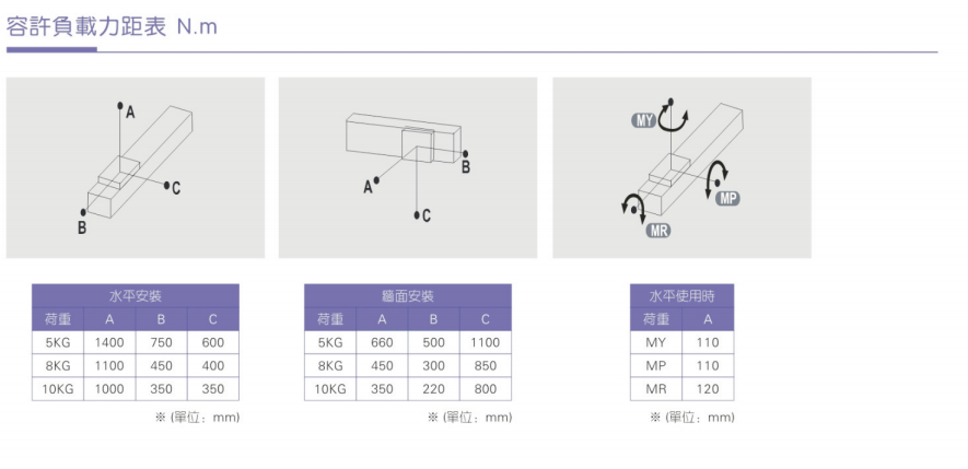 3、加減速度會(huì)使搬運(yùn)質(zhì)量產(chǎn)生慣性負(fù)荷,加減速度越大可搬運(yùn)質(zhì)量會(huì)越??;而且過(guò)大的加減速度會(huì)產(chǎn)生較大的重勢(shì)力,設(shè)計(jì)時(shí)需納入考量規(guī)范。
