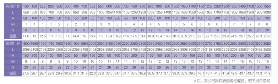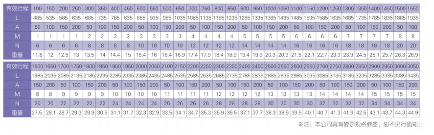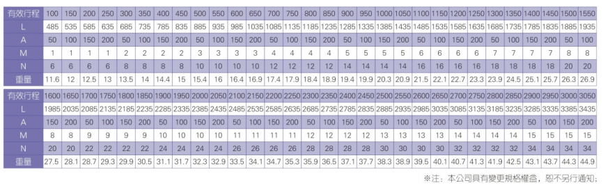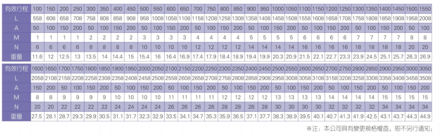 2、螺桿轉(zhuǎn)速超過臨界轉(zhuǎn)速時可能發(fā)生共振,臨界轉(zhuǎn)速和螺桿長度有關(guān),故滾珠螺桿的臨界轉(zhuǎn)速也間接決定了滑臺模組的有效行程和總長度,有效行程和常用螺桿規(guī)格轉(zhuǎn)速的關(guān)系如下列表格。