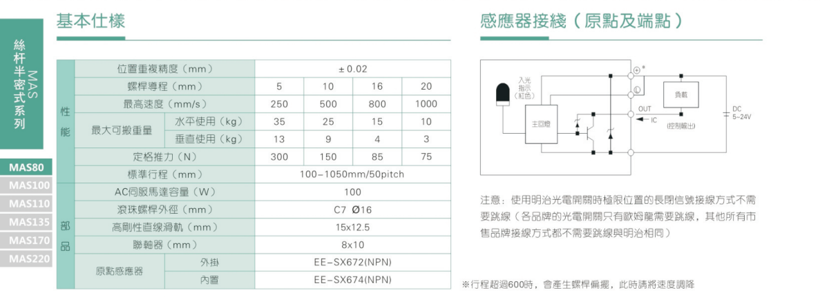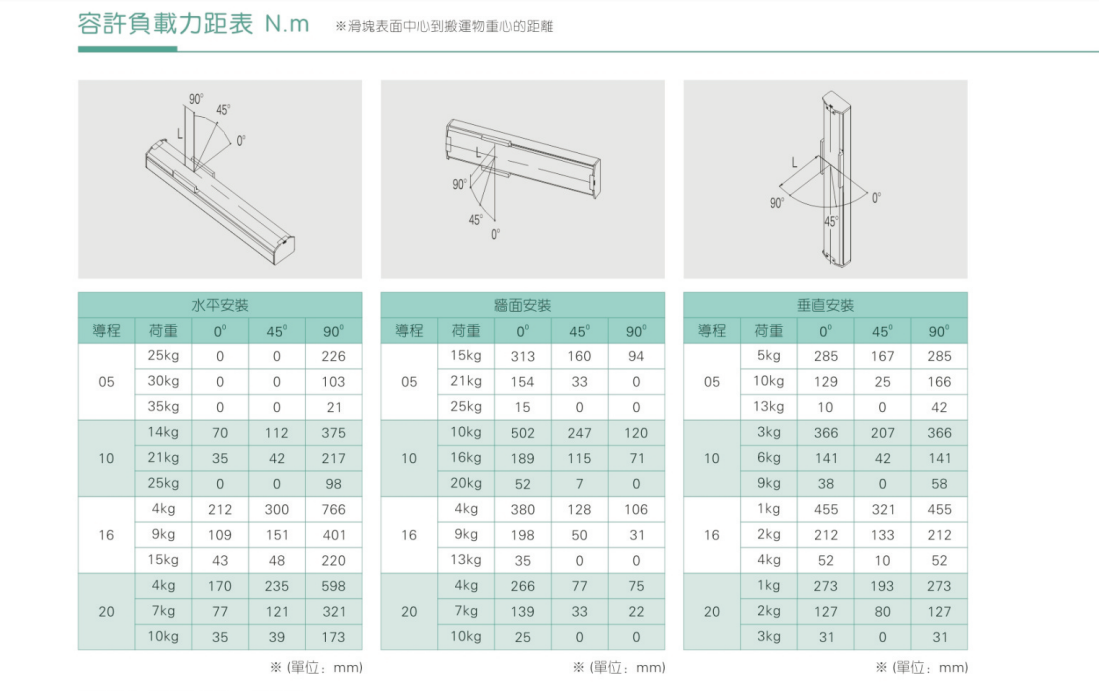 3、加減速度會(huì)使搬運(yùn)質(zhì)量產(chǎn)生慣性負(fù)荷,加減速度越大可搬運(yùn)質(zhì)量會(huì)越小;而且過(guò)大的加減速度會(huì)產(chǎn)生較大的重勢(shì)力,設(shè)計(jì)時(shí)需納入考量規(guī)范。