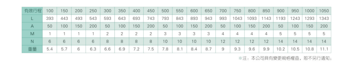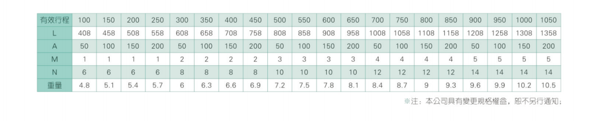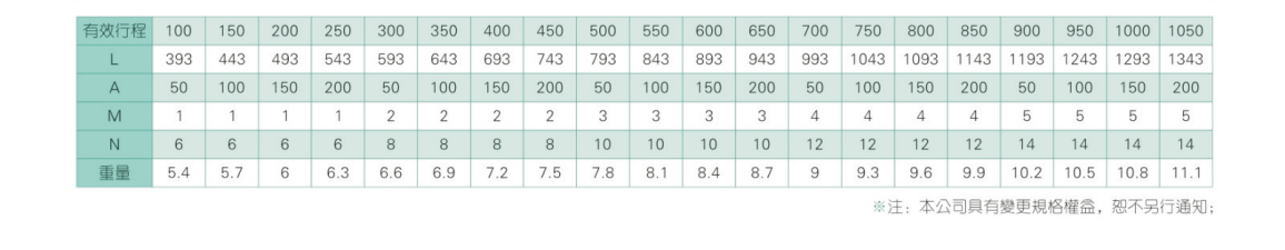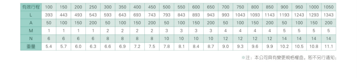 2、螺桿轉(zhuǎn)速超過(guò)臨界轉(zhuǎn)速時(shí)可能發(fā)生共振,臨界轉(zhuǎn)速和螺桿長(zhǎng)度有關(guān),故滾珠螺桿的臨界轉(zhuǎn)速也間接決定了滑臺(tái)模組的有效行程和總長(zhǎng)度,有效行程和常用螺桿規(guī)格轉(zhuǎn)速的關(guān)系如下列表格。