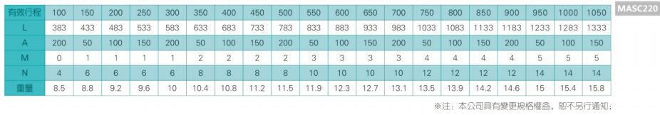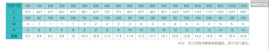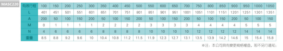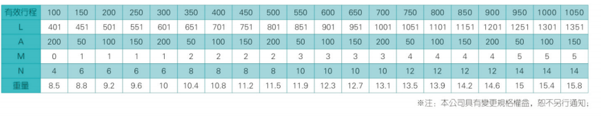 2、螺桿轉(zhuǎn)速超過臨界轉(zhuǎn)速時(shí)可能發(fā)生共振,臨界轉(zhuǎn)速和螺桿長度有關(guān),故滾珠螺桿的臨界轉(zhuǎn)速也間接決定了滑臺(tái)模組的有效行程和總長度,有效行程和常用螺桿規(guī)格轉(zhuǎn)速的關(guān)系如下列表格。