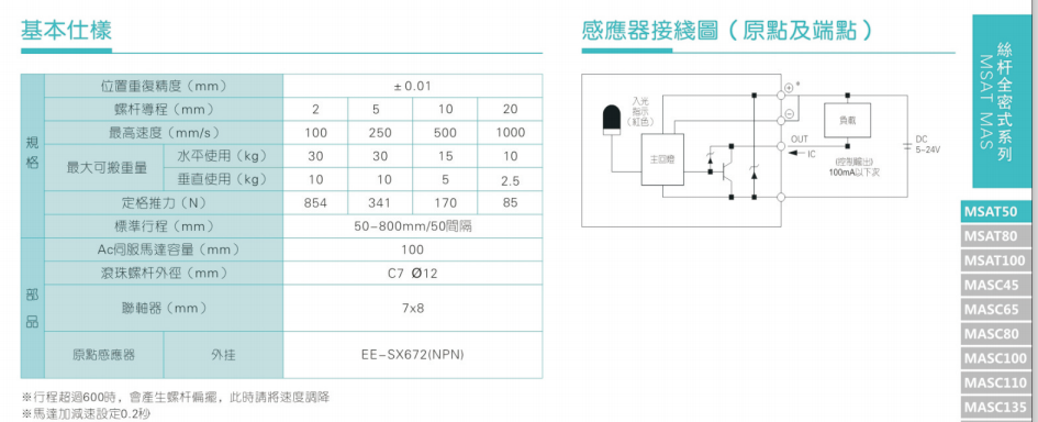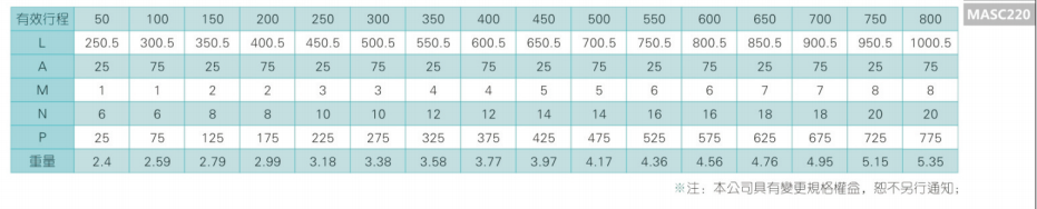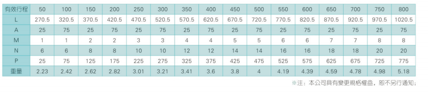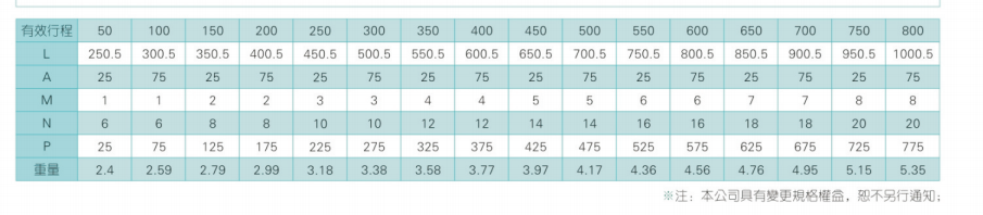 2、螺桿轉速超過臨界轉速時可能發(fā)生共振,臨界轉速和螺桿長度有關,故滾珠螺桿的臨界轉速也間接決定了滑臺模組的有效行程和總長度,有效行程和常用螺桿規(guī)格轉速的關系如下列表格。